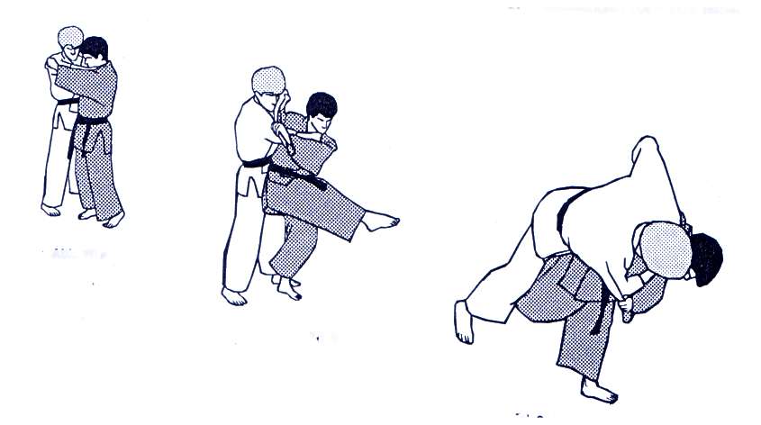 - تسوکوری یا قرار گرفتن در وضعیت پرتاب: بدن در این زمان در مطلوب ترین حالت ممکن قرار می گیرد که باعث می شود عمل اهرم کردن برای اجرای فن مورد نظر موثر باشد. برای اعمال فن حداکثر قدرت به وسیله دست ها، اندام و پاها به کار گرفته شود. اقدام باید سریع باشد در غیر این صورت حریف تعادل خود را بازخواهد یافت